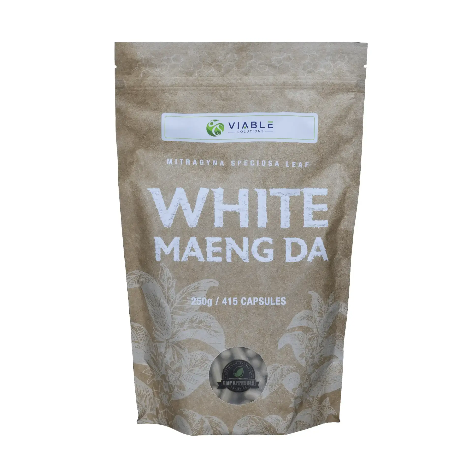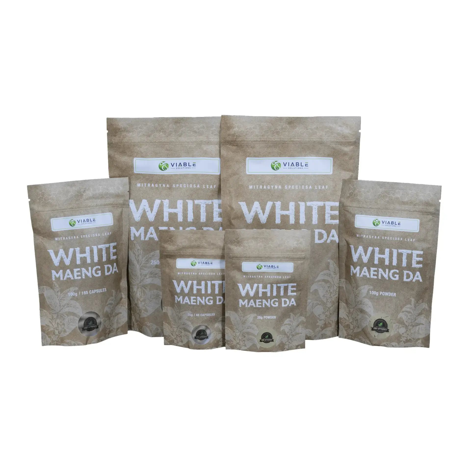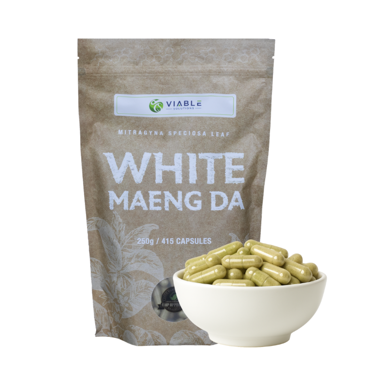 Our Viable Kratom White Maeng Da strain contains both White Vein (70%) and Green Vein (30%). Just like all of our other blends, we make sure each batch reaches 1% to 1.4% Mitragynine.