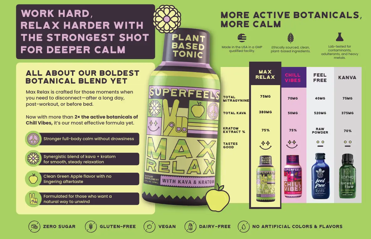 Super Feels Max Relax Kava + Kratom Tonic